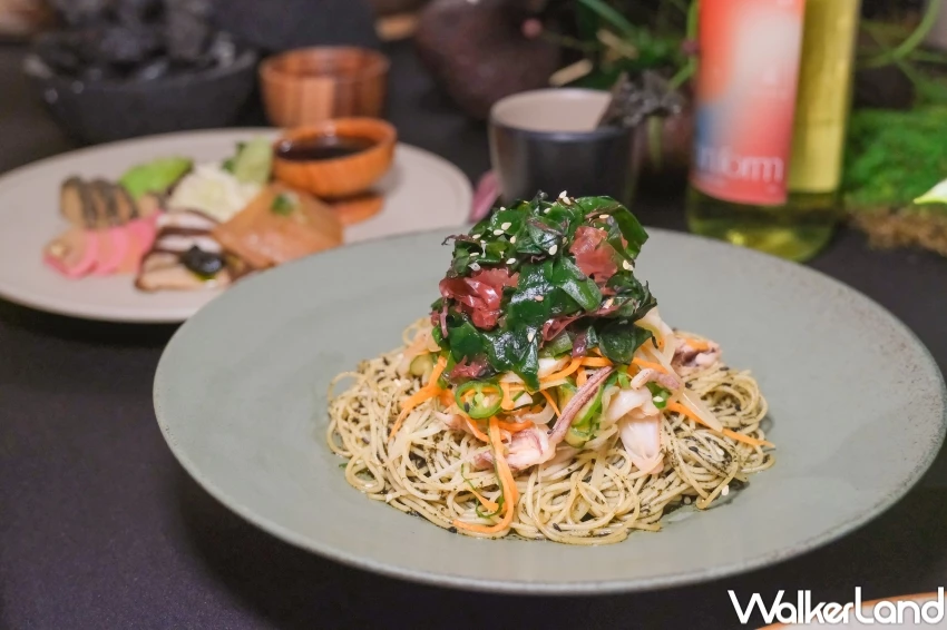 在這次聯名餐點中,最受矚目的作品是「Beyond Sashimi」,以酪梨、甜菜根、白蘿蔔與香菇打造出素食生魚片的錯覺,清爽滋味就連TWICE子瑜都想品嚐。另一道「Waves in Contrast」則以魷魚細條與天使細麵結合韓式泡菜,超清爽解膩的冷麵讓人超涮嘴。![]()