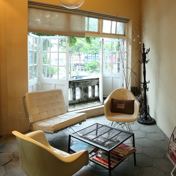 隱身在巷弄中的小露台,是間老房子改造而成的藝文空間,1F為主人Sam的工作區,本身是復古機車愛好者的他,在室內擺放許多二手老車偉士牌模型及零件,2F原本格局為飯廳及客廳,將兩者打通後作為提供藝文展覽之處。