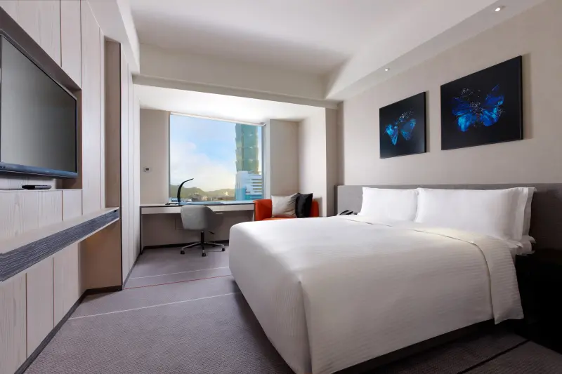 當代美學的設計概念,打造簡潔寬敞的空間感,酒店共擁有235間客房,包含10間套房,所有客房盡覽城市美景,其中有86間客房擁有台北101美景,跨年能近距離享受煙花燦爛之美,房內特選英國頂級地毯品牌-Brinton,並將空間巧妙融入藝術品作點綴,營造實用與美觀並重的精緻典雅。酒店內全區免費使用高速網路服務,讓商務或休閒目的旅客,不受時間和空間的限制,輕鬆接收及分享訊息。
