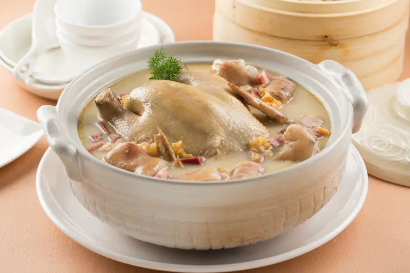 民初,來自大陸各省達官顯要齊聚台灣,更將一代名廚宗師引進台灣食壇,陳師傅便曾在兩蔣時代官邸向御廚拜師學藝,徹底習得浙江菜系,習得扎實工法與手藝。浙江菜彙集大江南北料理菁華。考驗主廚精心手藝與食材到位與否。為滿足名門貴族挑剔味蕾,老師傅堅持以十二隻老母雞與上等細緻干貝熬製成黃金湯頭。將所有營養菁華徹底化入上湯當中,光是將湯匙放入口中,便酥爛散化如雲,便是這樣純熟廚藝與對食材堅持,成就浙江菜傳奇。
