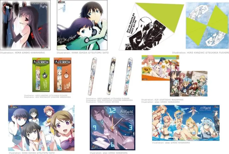 在販賣區的部分,會場將販售超過40款全新設計精品!以《我的妹妹哪有這麼可愛!》、《青春紀行》、《魔法科高中的劣等生》、《打工吧!魔王大人》、《蘿球社!》、《櫻花莊的寵物女孩》、《刀劍神域》及《加速世界》等作品,製作會場限定款的A4雙袋資料夾、手機吊飾、壓縮抱枕、方形立桌鐘、超細纖維毛巾、水性鋼珠筆(藍色墨)、自動直傘、掛軸及門帘等各項全新精品!當中還包含台灣限定的「神秘伴手禮」將在會場限量販售,絕對讓參展讀者們驚喜連連!