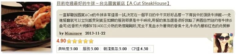 Mimisnow 造訪 A CUT STEAKHOUSE(國賓大飯店)