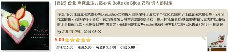 早早在2/5就預約了珠寶盒法式點心坊,2月份推出的情人節限定杯子蛋糕,在2/8首賣當日就拿到2個限定蛋糕,使用輕乳酪蛋糕/草莓果醬/白巧克力鮮奶油/新鮮水果搭配而成,光是看到♥期間限定,每日限量推出♥wanchen我就好沒有抵抗力阿>///<