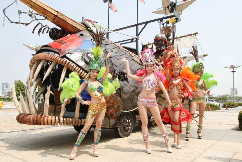 最受矚目的花車踩街遊行將於29日下午3時在時代大道熱鬧展開,共有35支隊伍、近700人參與遊行,本次主花車-「火焰鋼鐵海盜船」由六位法國藝術家合力打造,運用漂流木、廢鐵、光碟片等材質,加入艾菲爾鐵塔、鞦韆等創意,創造出趣味生動的火焰鋼鐵海盜船,藝術家們更化身海盜與顧客狂歡。還有騎兵海馬隊、巴西先生足球隊等大型特色花車,並搭配原住民小朋友的森巴鼓、社區、森巴女郎、豆子劇團等表演團體踩街,邀請市民朋友一同感受異國風情。