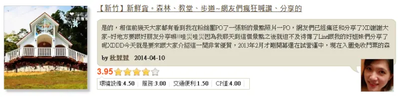 秋蓉蓉 推薦:地處於山谷之中,一路上陡峭,很多道路看似都才剛開挖不久,不過沿著陡峭的山坡進來,宛如世外桃源,別有洞天!這裡腹地還算大,環境也不錯,有步道森林可以散步,做森呼吸適合假日來這裡放鬆,體驗大自然的好地方
