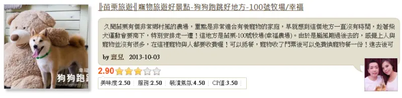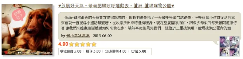 Daisy 推薦:主要以羊肉主食的狗狗餐,加了起司和蔬菜,我也不知道好不好吃,而且這其實是別的狗狗的中餐,看他吃的津津有味,應該還不錯就是了!沒想到望高寮附近就藏身著一間寵物餐廳,之前經過都沒特別注意到,偶爾帶自己心愛的寵物來這裡玩玩、運動、和別的狗狗接觸,是一個很好的假日休閒活動呢!