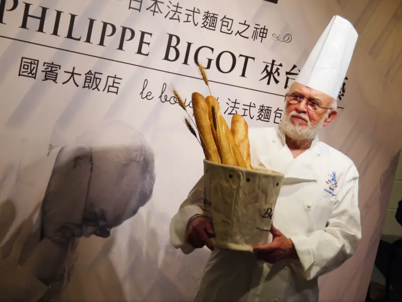 國賓大飯店邀請畢生於日本發揚傳承法國麵包的Philippe Bigot來台獻藝,師承「法國麵包權威」Raymond Calvel奠定正統法國麵包紮實技法,藉由紮實基本功的研習鍛鍊,展現正統法式麵包美味, 因在日本發揚法式麵包,獲法政府頒發法國榮譽軍團勳章(Legion d’honneur),更被日本人尊稱為「パンの神樣」,即「麵包之神」之意。