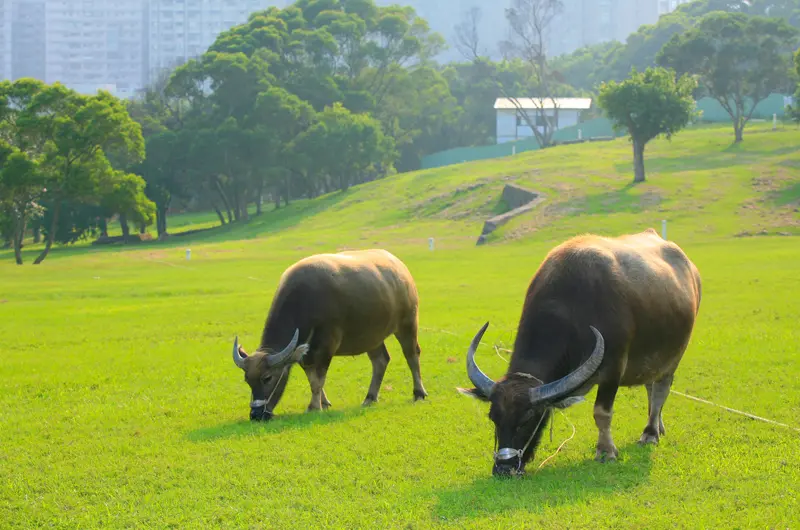 ↑↑↑校園內有大片綠地,迎面滿滿青草芳香;這兩隻北藝大的校牛,可是貨真價實的真牛!