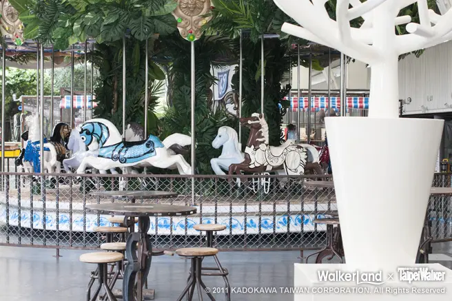 MAJIMAJI集食行樂靈感源自於泰國的市集,以打造大人的遊樂場為目標,結合創意市場、美味餐廳、神農市場等區域,融入環保、創意等元素。廣場中心還有旋轉木馬,更增加趣味,也讓台北市增添了享樂的新據點!