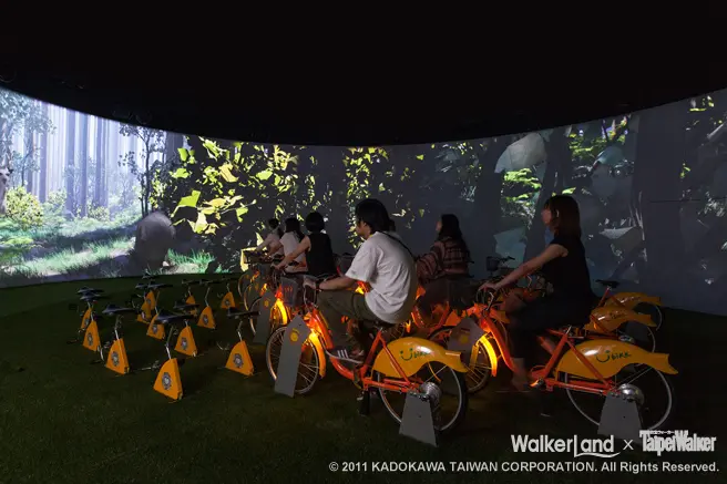 ↑↑↑在三廳的勇氣能量站,參觀者騎上改裝的YouBike體驗5D體感之旅,滑動螢幕,可以讓專屬的勇氣煙火在臺北夜空綻放!