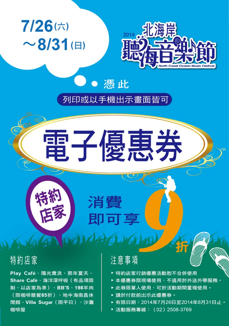 ▲ 照片說明:2014 聽海音樂節 電子優惠券 快儲存我。