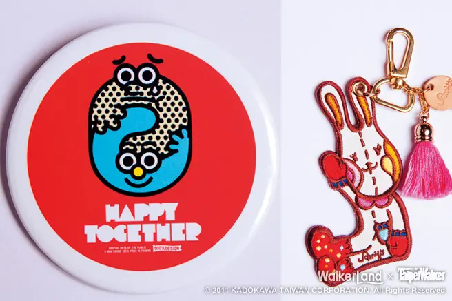 ↑↑↑別針30元(左)/多種可愛圖案可選擇。皮革鑰匙圈520元(右)/皮革製作的鑰匙圈,質感一流。