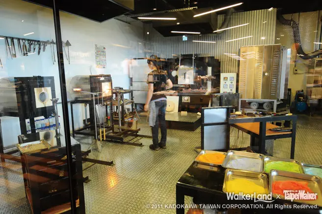 ↑↑↑透過一整面的透明玻璃牆往內看,可以看到玻璃藝術品的整個製作過程,堪稱是誠品生活松菸店特別的情景之一,相當有趣。