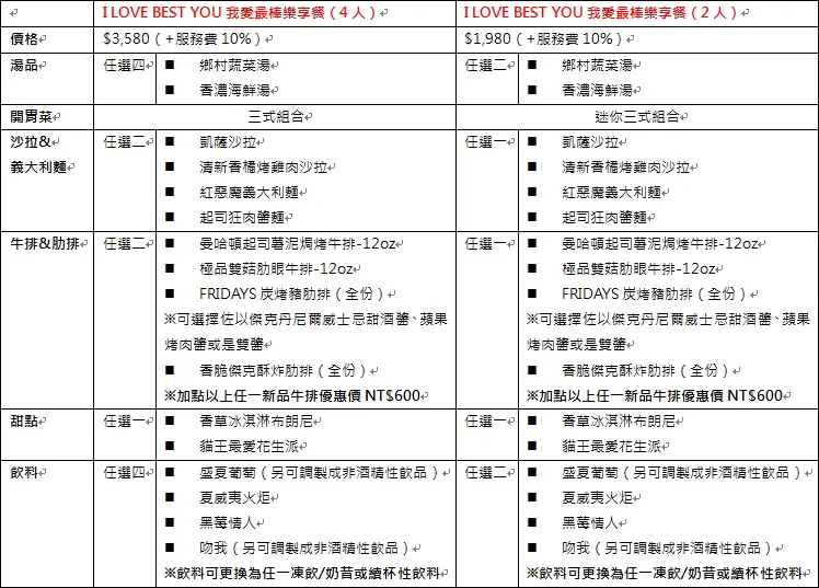 ▲照片說明: T.G.I. FRIDAYS 星期五餐廳 我愛最棒樂享餐。