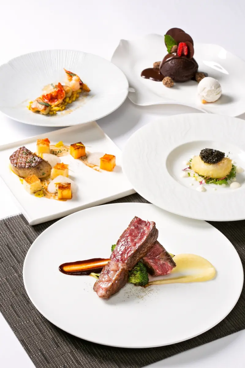 A CUT STEAKHOUSE 七夕情人方案於七夕晚間推出三款「仲夏熱情七夕情人饗宴」,每套價格2,900元(美國穀飼400日肋眼牛排)+10%、3,400元(美國穀飼400日A Cut牛排)+10%、3,900元(美國Brandt玉米飼養乾式熟成30日肋眼牛排)+10%起的套餐。此次NT$3,900套餐中,前菜選用頂級香檳茸雞蛋,結合海洋珍味頂級奧賽佳魚子醬及法式酸奶,入口香嫩滑美且味蕾間彈跳出魚子醬的鹹鮮;另將夏季時令芒果與肥嫩香煎鴨肝,一同譜出酸甜戀曲,一旁的薑味泡沫,在酸甜之際增添暖意;溫前菜烤波士頓龍蝦,佐以松露馬鈴薯及榛果奶油油醋,堅果焦香襯托龍蝦鮮味,層次更豐;主菜則以美國Brandt玉米飼養乾式熟成30日肋眼牛排,搭配香甜酸辛的A Cut牛排醬汁,讓人一口接一口;最後甜點獻上香濃歐可亞巧克力蛋糕,並搭配上頂級大溪地香草冰淇淋、榛果巧克酥及伊那亞巧克力加納許,層疊的甜蜜滋味為小倆口的戀情更添熱意。