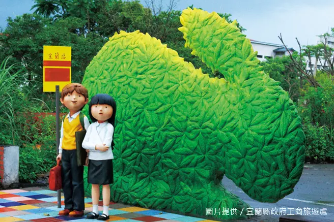 位於宜蘭車站南側舊宿舍區,整座廣場占地雖小,但因重現幾米繪本世界,童趣洋溢的立體人物與彩繪藝術,依然十分吸睛。這裡以繪本作家幾米《向左走.向右走》、《地下鐵》、《星空》3部作品為主題,與真人等高的《向左走.向右走》主角是全場焦點,另有散置的皮箱,也是遊客拍照經典場景。