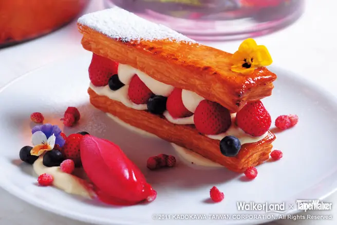 ↑↑↑現烤千層派380元/派皮精緻酥脆,搭配草莓入口可感受口味的層次變化。![]()