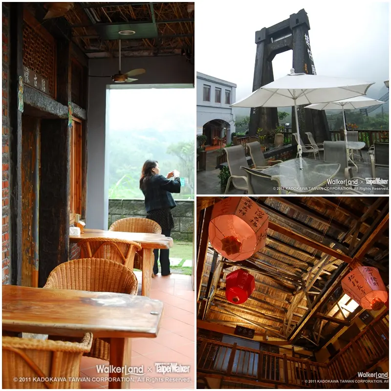 木桌、編織藤椅、天燈,古色古香的樓仔厝咖啡民宿不僅是民宿,更是十分地區超人氣景觀餐廳。坐在戶外的座椅,可以遠眺靜安吊橋,下方便是基隆河景,閒適的午後,坐在這裡來上一杯香醇的咖啡,靜靜享受平溪的寧靜之美。