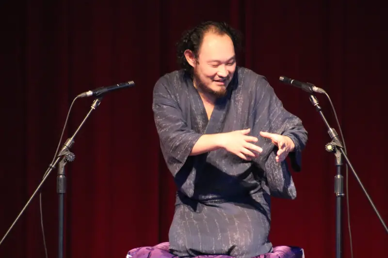 ▲ 照片說明:花創花酒節系列活動之一,詩酒話藝,由戴開成老師做日式相聲表演。