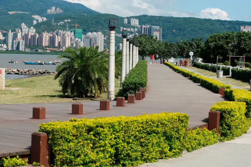左岸公園是一座具備觀光與休閒的綜合性公園,沿岸人車分道概念設計的自行車道與木棧步道,可遠眺淡水開闊景致,是假日休閒踏青的好去處。