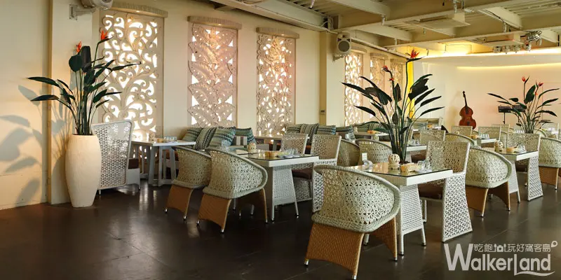 遼闊的戶外庭院、人造舞台水池、發呆亭的獨立用餐座區,佔地1200坪、耗資2億打造而成的BALI水岸,特意將峇里島的風光移植到淡水河岸。主體建築是一座以交錯縱向線條支撐波浪屋頂的白色建物,在隨性蔓延的線條設計中散發一股慵懶的度假氣息,結合戶外的水岸景色構成一幅令人目不轉睛的美麗景象。除了設置可盡賞風景的露天座位區,店內另搭建一座可供新人舉辦婚禮的白色教堂,為餐廳增添浪漫風情。店內餐點則以結合台灣在地食材所延伸的東南亞風味西式創意料理為主,於開放式廚房每日為顧客精心製作料理,伴著眼前美麗景色與駐店現場演唱,讓人忘卻時間,只想沉浸於迷人、美好的愜意時光。
