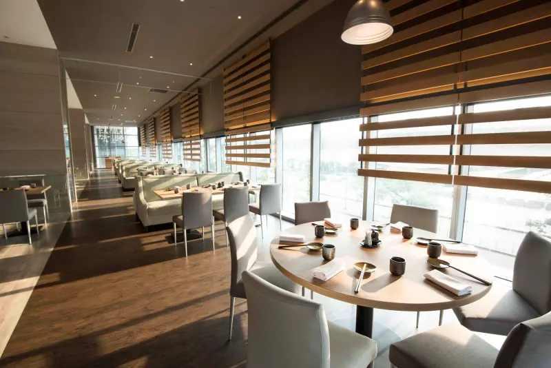 ▲ 照片說明:寒舍樂廚裝潢風格以明亮舒適為主要基調,運用大地色系勾勒時尚簡約的用餐環境。