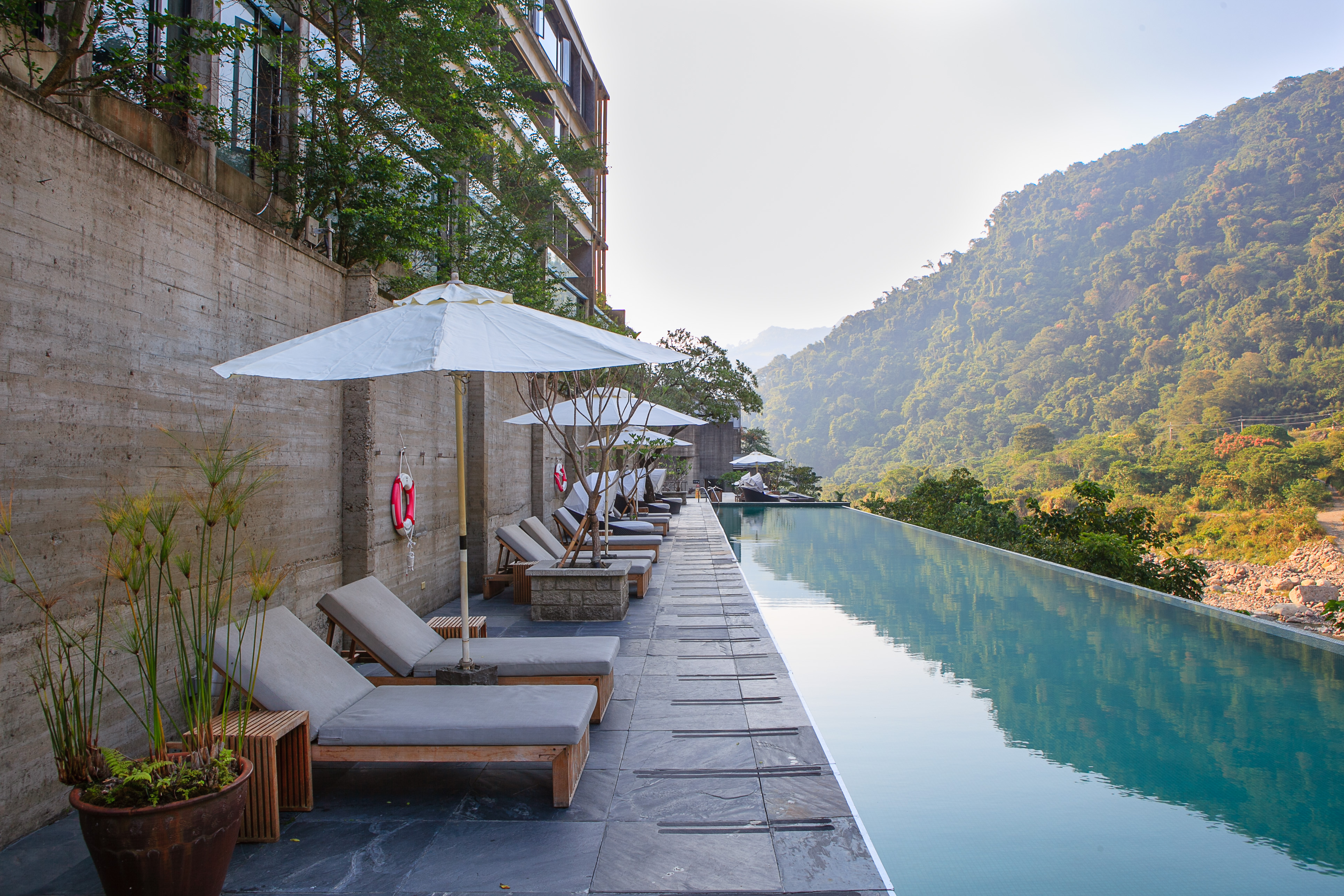 位於汶水溪畔,外觀以混凝土與鐵木打造,與周遭山水環境共融,流露出自然又時尚的動人氛圍。多款溫泉客房,每一間都擁有獨立浴池及SPA,讓人可恣意泡湯享受舒暢感。會館還規劃露天風呂,每座大小、形狀、池溫不盡相同,尤其是鏡面溢水泳池,緊鄰溪畔而立,水面倒映著燈光及山水景觀,讓人游起泳來特別感到意猶未盡。