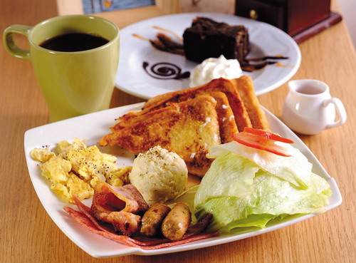 (法蘭西(法式吐司)280元/早午餐選擇之一,含沙拉、火腿、美式香腸、布朗尼蛋糕,咖啡、紅茶可無限續杯。)
