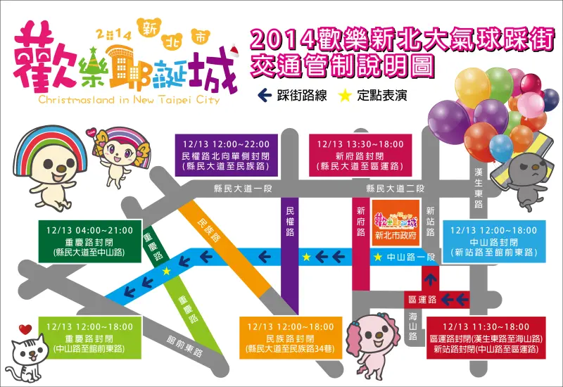 ▲照片說明:2014新北市歡樂耶誕城 大氣球踩街路線。