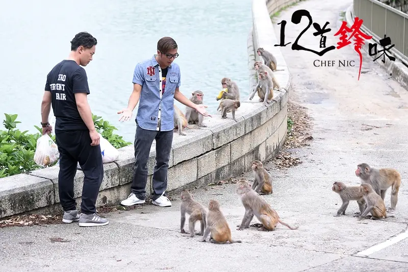 ▲ 照片說明:陳奕迅在公園中指著猴子,開謝霆鋒的玩笑:「霆鋒,你兄弟。」