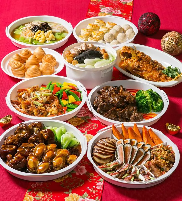 豐盛多元的年菜套餐連年暢銷,結合道地與創新風味的美饌更是獲得媒體好評,今年續以精緻手法推出道地粵式及川式風味年菜,結合傳統烹調手法與創新食材的「粵式年菜套餐」(八人份每套12,000元)以及融合川菜鮮麻香醇、風貌百變的「川味年菜套餐」(八人份每套12,000元),各限量100套;為提供消費者更多元化的年菜選擇,粵菜廳也以頂級食材推出單品料理,滋補養生的「香檳茸花膠燉烏雞」(每甕5000元),川菜廳則推出經典佛跳牆「闔家歡」(每甕5500元)、「極品闔家歡」(每甕NT$7500) 限量500甕,另有多道招牌人氣商品,如:寓意「昌隆」的椒鹽鯧魚,象徵「好彩頭」的蘿蔔糕等,無論選擇單道料理豐富桌宴,或以多樣化套組年菜點綴新年皆能輕鬆打包五星級美味。