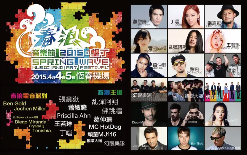 每年春天在恆春機場舉辦的墾丁春浪音樂節,今年特別邀請金曲歌王蕭敬騰、全民情歌天后丁噹、海雅谷慕「張震嶽」、嘻哈教父MC HotDog以及饒舌天團頑童MJ116到場造勢,同時主辦單位也公布了今年春浪電音場的DJ卡司名單。