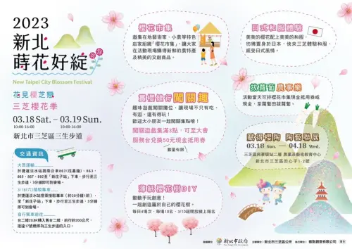 每年吸引大批國內外觀光客前來朝聖的陽明山花季,今年茶花、山櫻花在天氣冷熱催化下,逐漸展現曼妙花姿,將陽明山妝點出滿山桃紅春色,今年度陽明山花季以草山三部曲,愛上好茶、櫻之戀及杜鵑情緣三種主要花卉,結合陽明山生態資源、首度在陽明山登場的在地故事紙風車歌舞劇以及國際知名藝術大師吳炫三的裝置藝術,作品包括〈小王子〉、〈工業巨牛〉、〈少女的臉〉等,讓大家來到花鐘廣場即可感受到花與藝術的結合,本次也邀請日本國寶級大師後藤純男櫻花畫作亞洲首展,並辦理首次陽明山花見野餐活動、首次亞洲最大美軍眷舍群導覽系列活動,內容精彩可期!