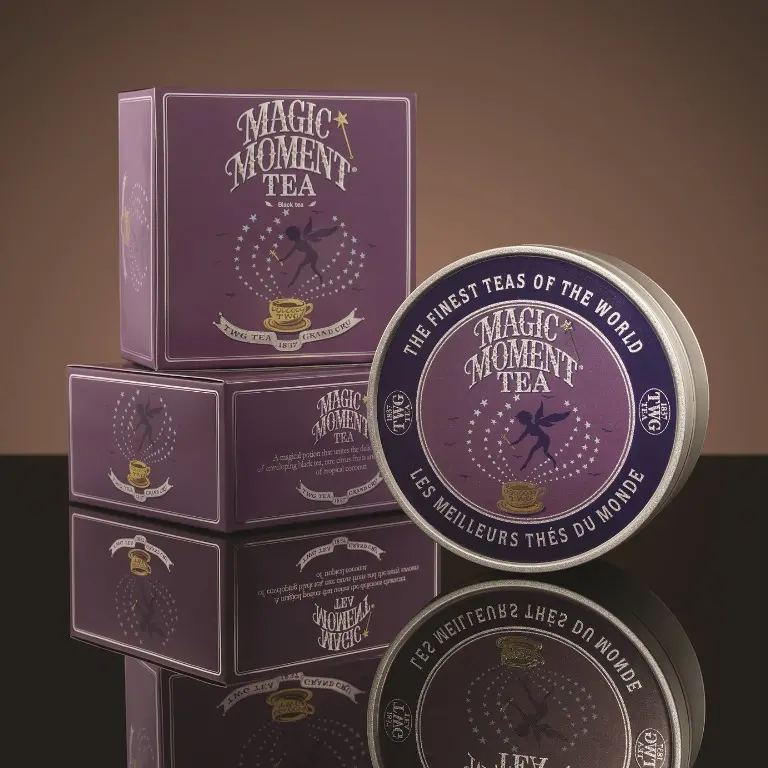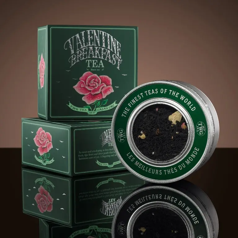 專為生命中的重要時刻所設計的TWG Tea魚子醬錫罐禮盒系列,以圓形錫罐為概念,每罐內含100克散裝茶葉,一打開便有香料所融合的芬芳撲鼻。其中TWG Tea茶之戀情(TWG Tea Amour de Thé)將愛情的真諦與嬌嫩欲滴的玫瑰花瓣,融入特選的大吉嶺黑茶中,綺麗迷人的愛情靈藥,優雅地收藏於指標性的TWG Tea魚子醬錫罐禮盒。而銀色魚子醬錫罐將甜蜜的TWG Tea戀人早餐茶(TWG Tea Valentine’s Breakfast Tea)包覆其中,如醉人的愛情般,將新鮮成熟的果實以銀色珍珠點綴在柔和的琥珀色茶湯中,歡樂的淚珠閃閃發光。而刻劃著記憶符號的TWG Tea魔幻時刻之茶(TWG Tea Magic Moment Tea),其尊貴的魚子醬錫罐內盛罕見柑橘水果與黑茶之結合,洋溢熱帶風味的堅果與椰子尾韻,化為魔幻神奇的藥劑。