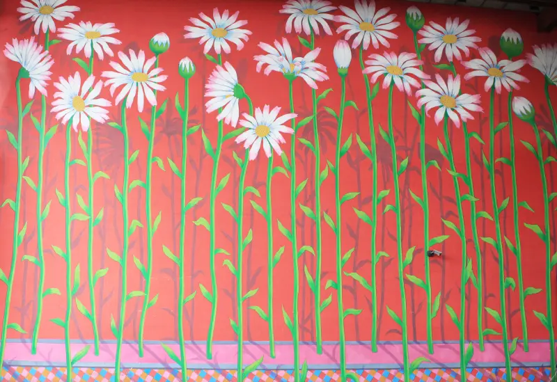 ▲ 照片說明:歷史花況照片(圖左/臺北市會展產業發展基金會 花博公園官網)、出自幾米繪本的大紅花牆配,是許多新人取景的絕佳景點。(圖右/臺北市會展產業發展基金會提供)