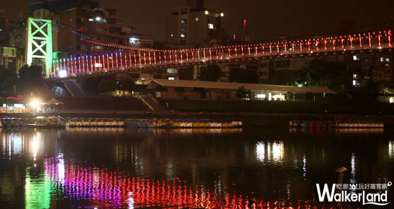 ▲碧潭吊橋會變換顏色,吸引不少民眾拍照駐足。(圖/新北市觀光旅遊局提供)