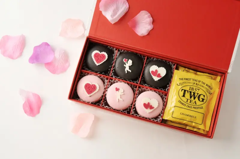 情人「丘比特馬卡龍禮盒」:4入裝390元、6入裝+TWG茶包(3入)580元