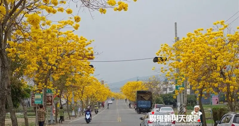 黃花風鈴木大道平日兩旁車流不多,感覺幾乎都是來賞花的,注意一下交通安全的話,其實可以拍到從進到遠金黃色花朵大道。