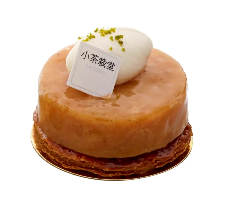接續架構清晰、緩慢而富有田園詩意的第二樂章<黃昏>—小茶以在法國流傳的百年人氣甜點「反轉蘋果塔」來詮釋。黃褐色的焦糖蘋果塔外型,正呼應著第二樂章<黃昏>。「反轉蘋果塔」源於1880年代Tartin姊妹的飯店,某日烤製蘋果派,過於忙碌不小心將簡單的蘋果派內餡煮焦。擔心和蘋果一起煮製的糖和奶油焦掉嚐起來味道不好,為了挽救趕緊鋪上派皮,連著鍋子放進烤箱烤製。烤熟後將鍋子倒扣,將蘋果塔端放在盤子上,是〝反轉〞的來由。過程上的錯誤,意外造就焦糖和蘋果的相乘美味!大受好評成為歐洲流傳百年的人氣甜點。新鮮蘋果和焦糖、香草籽融合的酸甜滋味,搭配小茶頂尖美味的千層派,想要一嚐這款人氣甜點的法式甜點迷可千萬不要錯過了。