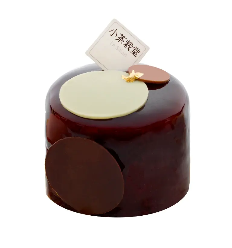 第三樂章是輕快活潑的<詼諧曲>○註2—小茶以黑莓葡萄香檳幕斯口味的「愛麗舍宮」作為表現。「愛麗舍宮」是法國總統府名稱,更彰顯此款蛋糕的高雅及正統法國氣氛。「愛麗舍宮」以藍莓、黑莓幕斯搭配上輕甜的葡萄香檳,鑲入洋梨並以橙香蜜香紅茶沙布列做基底,完美的結尾。