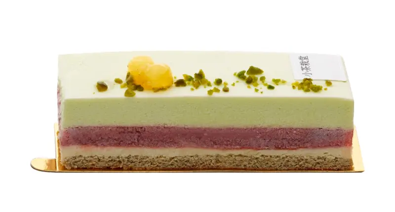 最後一個樂章也就是第四樂章,充滿歡樂嬉鬧的氣氛<盛春>—我們以充滿綠意的「聖路易島」○註3來代表,是以開心果巴伐利亞做為主體,搭配草莓檸檬庫利和開心果綠茶杏仁蛋糕,口感清爽最適合春夏品嚐。