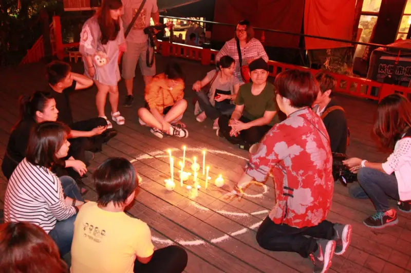 ▲溪頭妖怪村賞螢活動暨試膽大會的驚嚇過程中放聲大喊「嘎您老母來七逃」與「愛呀!我的媽」,讓大家釋放壓力,歡度母親節。(圖/溪頭妖怪村)