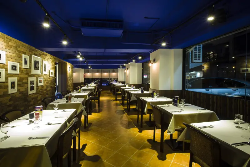 ▲店內的風格採藍色系,燈光美氣氛佳,來這裡約會準沒錯。(圖/星辰牛排 提供)