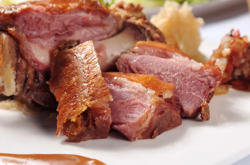 ▲德國烤豬腳只取肉多且帶骨的部位,帶些許咬勁、皮QQ,口感上下兩面酥脆,側邊鬆軟,紮實富有膠質的口感。(圖/星辰牛排 提供)