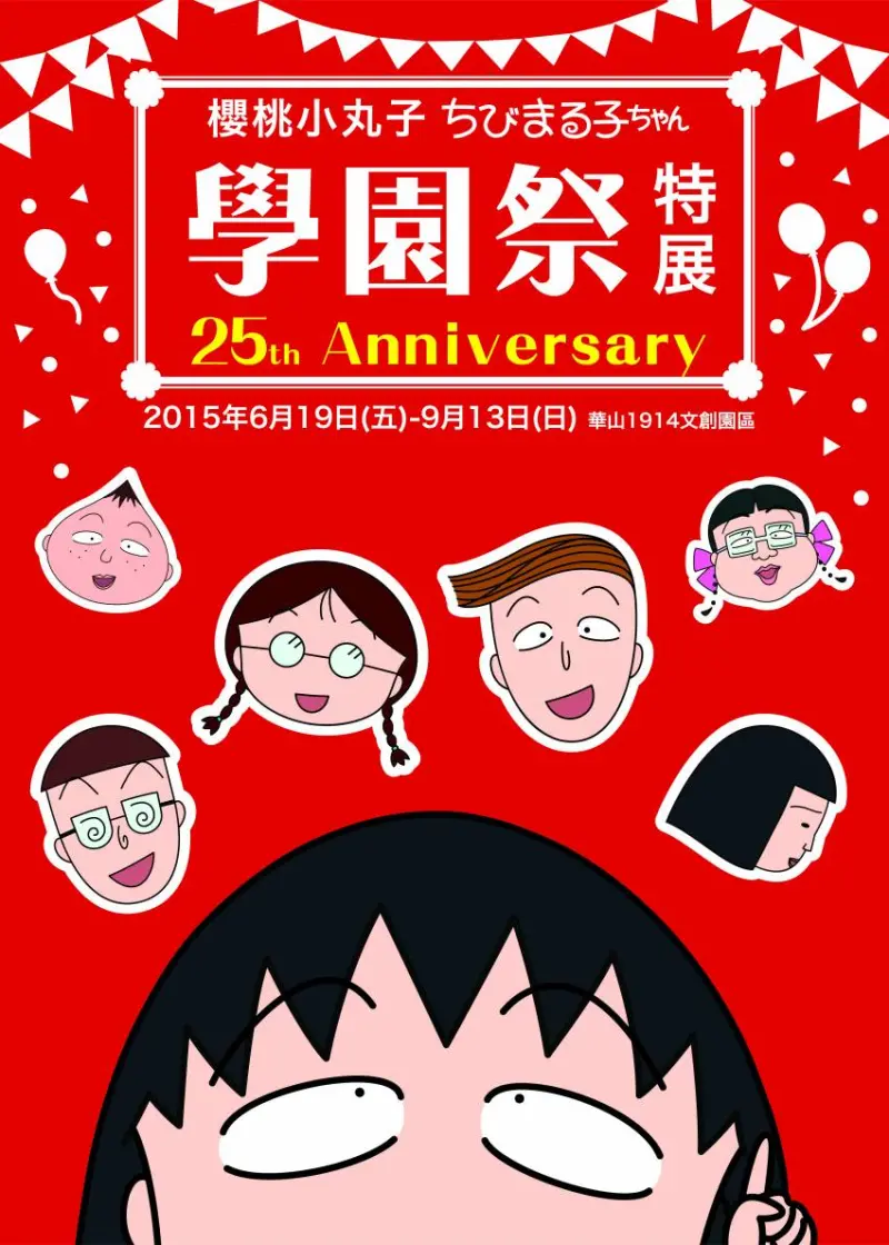 適逢《櫻桃小丸子》動畫誕生25週年,「櫻桃小丸子學園祭─25週年特展」特別於6月19日至9月13日在華山1914文化創意產業園區舉辦。以學園祭運動會為主題,帶給大家最熟悉的小丸子與3年4班各具特色的同學們。