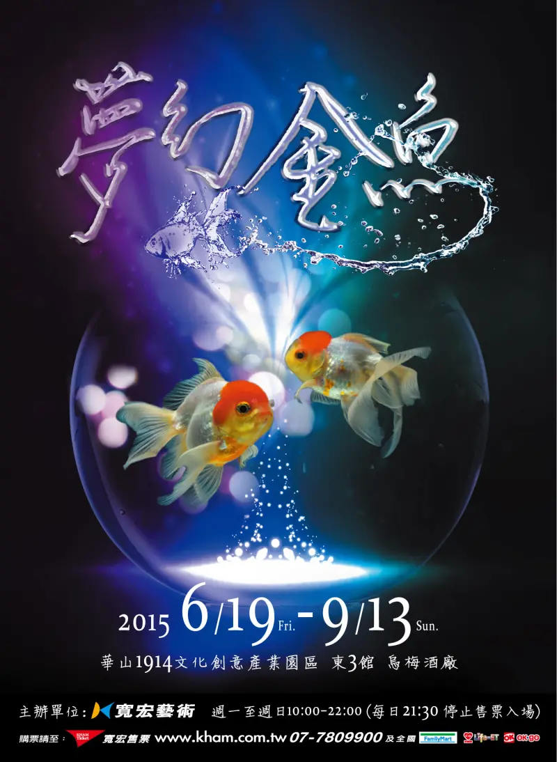 台灣首度嘗試結合金魚與裝置藝術,特別設計各種造型魚缸、造景以及燈光視覺特效,打破社會大眾對傳統水族箱的刻板印象,今夏將帶給觀眾前所未有的感官饗宴!「夢幻金魚」特展也首創台灣日夜雙重展覽體驗,場內營造出夏夜氣氛,並提供各式飲品:在結束一天工作後,一起來「夢幻金魚」特展放鬆休閒,輕鬆享受吧檯飲品,沉浸在迷人的夜晚水中展覽氛圍!