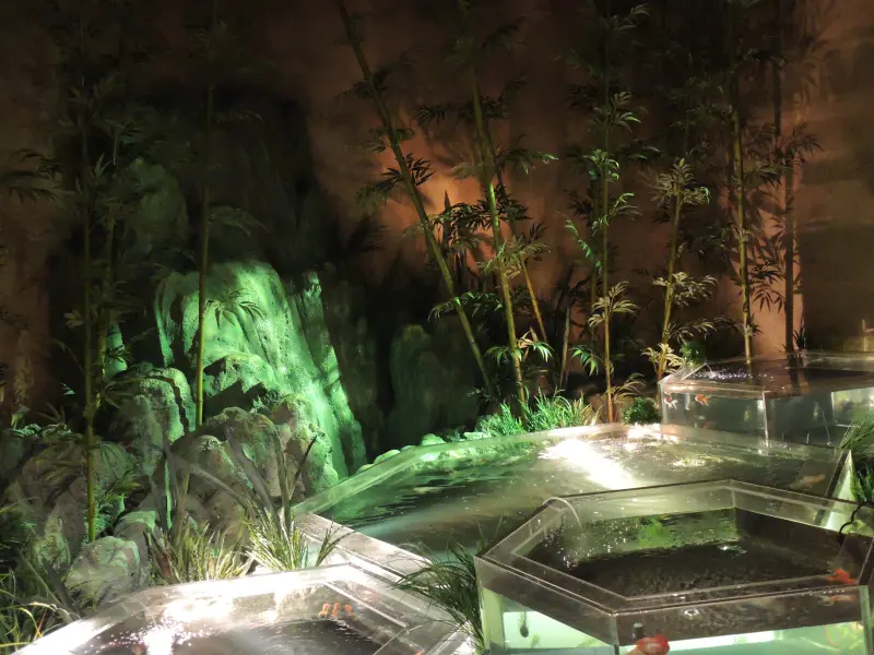 日式庭園等主題,特別設計反映各區情境的造型魚缸、造景以及燈光視覺特效,打破社會大眾