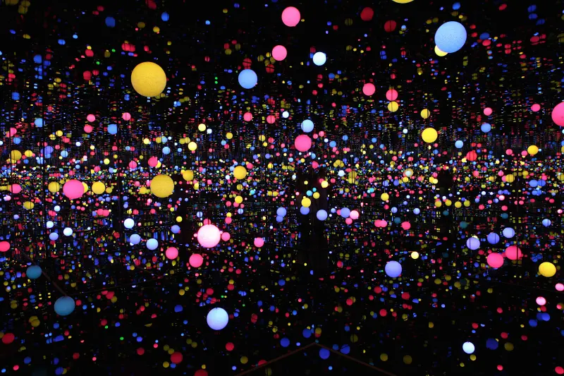 ▲台灣站首度曝光的作品〈無限鏡屋-靈魂閃耀〉(Infinity Mirrored Room-Brilliance of the Souls),為著名鏡屋系列中的2014年全新創作。 (圖 Copyright © YAYOI KUSAMA 提供)