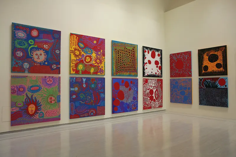 呈現草間彌生藝術生涯六十年間的經典作品,完整呈現其獨特的藝術風格。幼年時代她患偏執狂的強迫症,這種疾病,卻成了藝術之靈。她曾經說過在她的作品中反覆出現的特定花紋等因素的擴散,完全出自佔據在她本身大腦中的物體形象的感觀認識。強迫症以及幻覺成為了她創作的基礎。