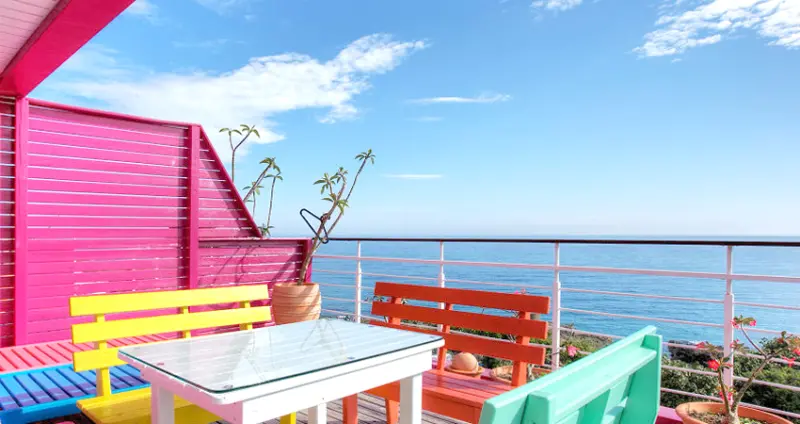 ▲五彩繽紛的可愛陽台,讓人眺望大海心情更好!(圖/瘋台灣民宿網)